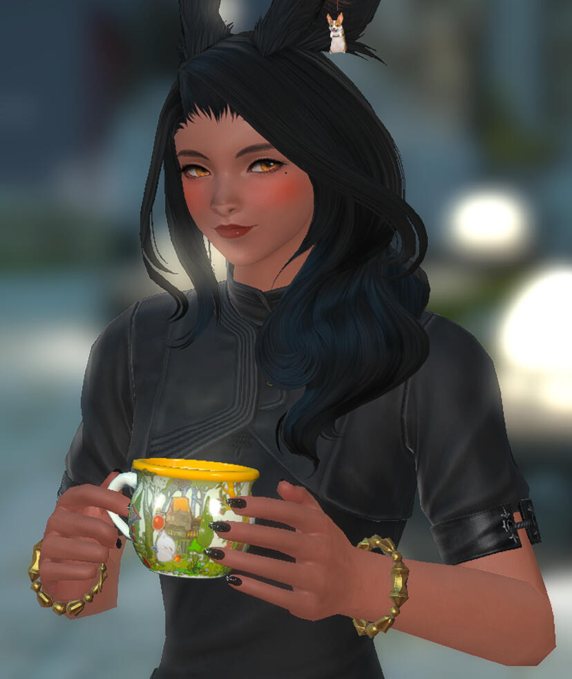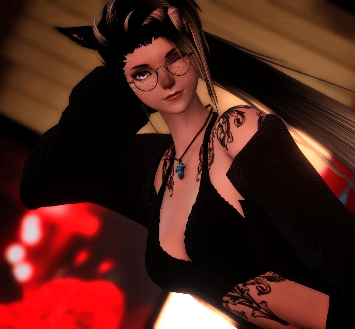 Vivi Blacktea is a down-to-earth Miqo'te who goes by Vivi or Tea; your choice. She loves chatting about anything, from the top spots to farm glamour to those more intimate topics on your mind. Just bring it up.As a dancer and escort at the club, she's all about creating fun, unforgettable nights. Whether it's a flirty dance, relaxed conversation, or some one-on-one time, Vivi makes it happen. Connect with her and see where the evening takes you.