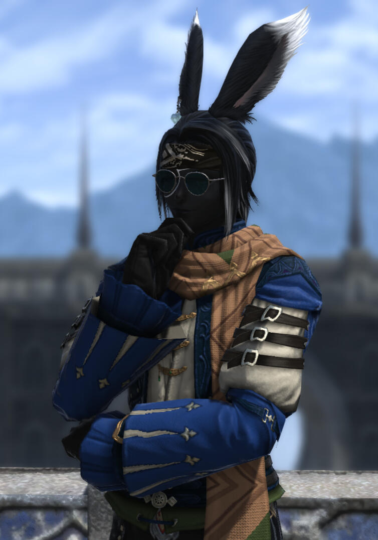 Cowbot Ninetythree, colloquially known by his friends and confidants as "Moo" is a Viera from the Golmore Jungle. He spends his free time practicing with blue magic, but is no stranger to having a good conversation! He's worked in a variety of positions and loves to learn about new people, and help anyone shy break out of their shell. If you catch him out in the wild, feel free to send a friendly wave his way!